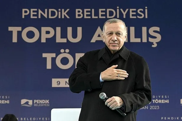 Son dakika haberleri... Başkan Erdoğan Pendik'teki toplu açılış töreninde önemli açıklamalarda bulundu. Erdoğan, Kılıçdaroğlu'nun seccade skandalına "Kıbleyi bilmeyenler tabi ki seccadeye ayakkabı ile basar. Bunlara asıl kıblenin neresi olduğunu 14 Mayıs'ta siz bildireceksiniz" dedi. Açılışa 50 bin kişinin katıldığını açıklayan Erdoğan, "Vatandaşlarımızın ilgi ve alakası neyin ne olduğunu açıkça gösteriyor. Sordum emniyete buradaki katılım ne? Aldığım cevap şu 50 bin. Yürüyoruz, yürüyecek bu millet arkandan diyorlar." ifadelerini kullandı.