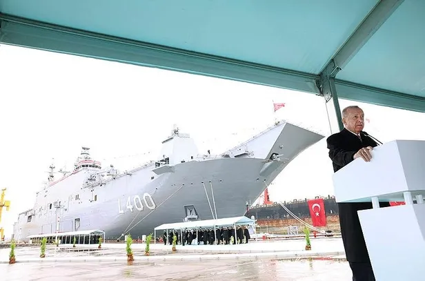 Başkan Recep Tayyip Erdoğan, "Hizmete aldığımız TCG Anadolu en büyük ve en ağır helikopterler ile insansız hava araçlarının iniş kalkış yapabileceği kendi alanında dünyanın ilk savaş gemisidir." dedi.