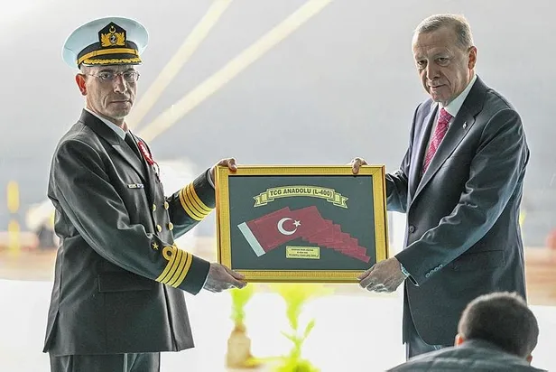 TCG Anadolu gemisinin inşasına 2016 yılı Nisan ayında başlandığını anımsatan Erdoğan, "Aradan geçen 7 yılın sonunda TCG Anadolu gemimizi hizmete alıyoruz. Mutluyuz, gururluyuz. Rabb'im bu gururumuzu daim kılsın." diye konuştu.