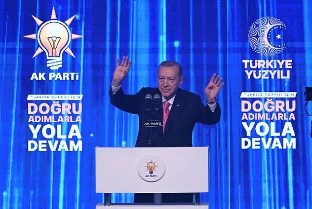 "Vakit Türkiye vakti" diyerek girilen 2018 seçimlerinde milletten yeni yönetim sisteminin onayını aldıklarına işaret eden Erdoğan, bugün de "Türkiye Yüzyılı için doğru adımlar" diyerek bir kez daha milletin huzurunda olduklarını dile getirdi.
