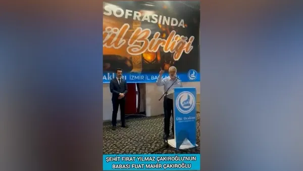 Ülkü Ocakları İzmir İl Başkanlığının organize ettiği iftar programına şeref konu olarak davet edilen Şehit Fırat Yılmaz Çakıroğlu'nun babası Fuat Mahir Çakıroğlu, İYİ Parti'den İstanbul 3'üncü bölge 2'nci sıradan milletvekili adayı olan Seyithan İzsiz'in, Ülkücü Şehit Fırat Çakıroğlu'nun katili PKK'lı Nurullah Semo'ya burs verdiğinin ve katil Semo'nun akrabalarının düğününe katılmasıyla ilgili açıklamalarda bulundu.