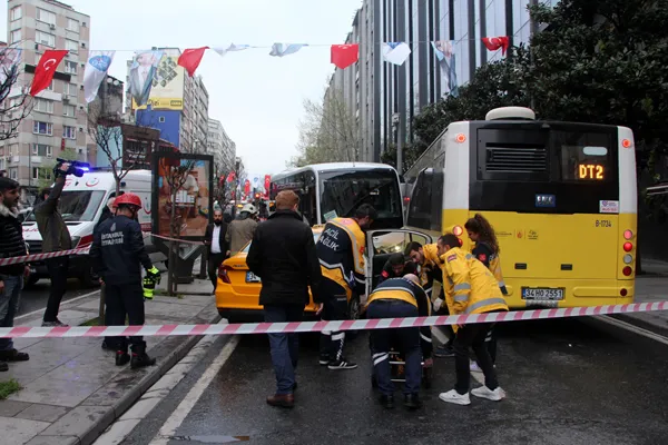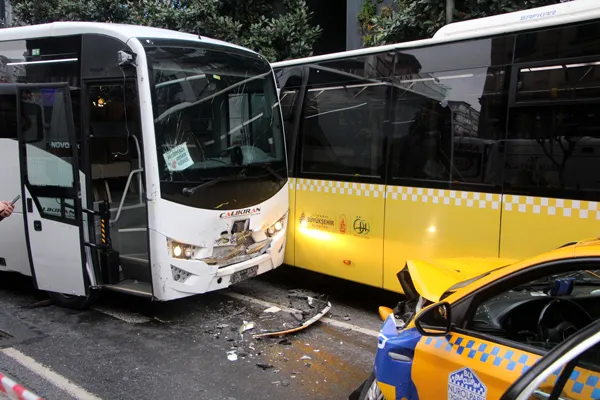 Son dakika: Şişli'de feci kaza! Servis minibüsü önce iki İETT otobüsüne ardından taksiye çarptı