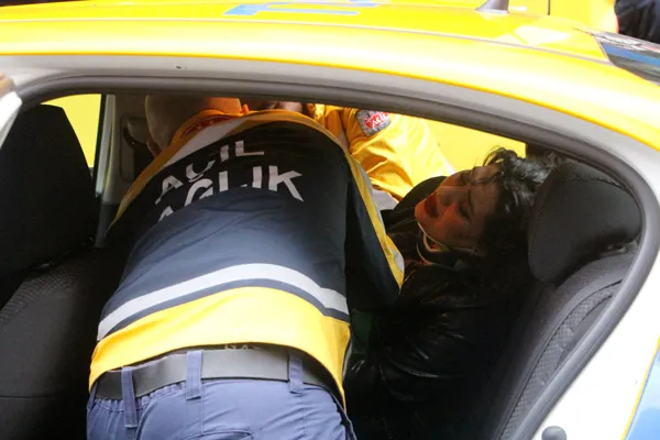 Yaralı yolcu, taksiden çıkartılarak ambulans ile hastaneye kaldırıldı. Ekiplerin çalışması sürüyor.