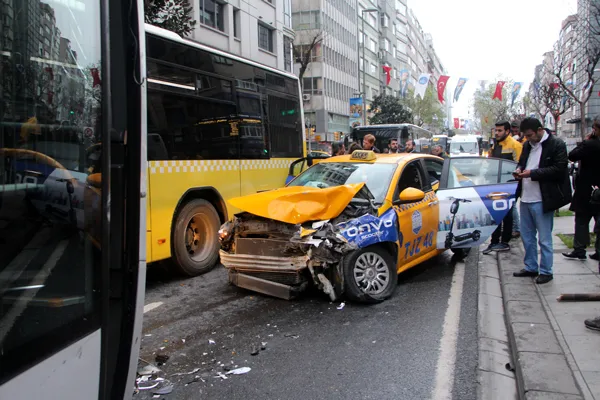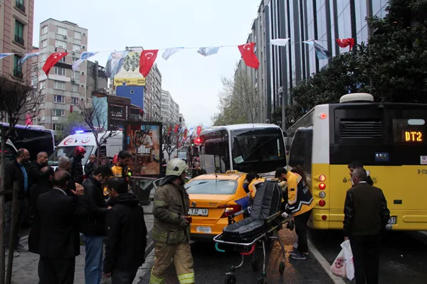 Şişli'de şoförünün direksiyon hakimiyetini kaybettiği servis minibüsü önce iki İETT otobüsüne ardından bir taksiye çarptı. Kazada taksideki kadın yaralandı. Kaza nedeniyle Halaskargazi Caddesi Mecidiyeköy istikameti trafiğe kapandı.