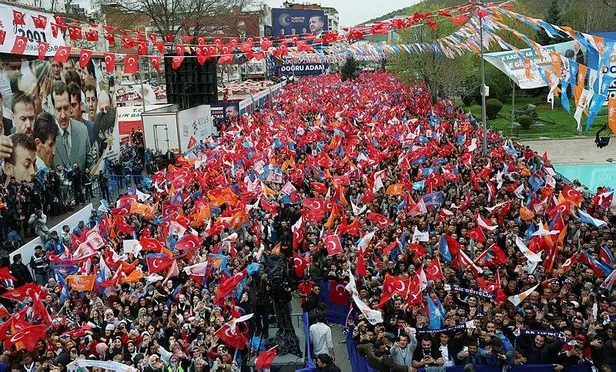 Seçime 26 gün kaldığını anımsatan Erdoğan'ın "Ana kademe, kadın kolları, gençler, gece gündüz çalışmaya var mıyız? Kapıları çalıyoruz değil mi? İnşallah ben diyorum ki her bir AK Partili 100 kişiyi daha sandığa taşımalı. Var mıyız?" sorusuna, alandaki vatandaşlar "Evet" karşılığını verdi.