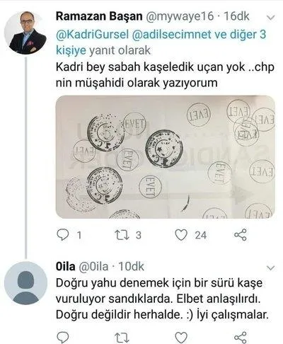 CHP'nin fonladığı Merdan Yanardağ, "Seçim pusulasında Erdoğan dışında adaylara basılacak oyların silineceği ve saat 17:00'den sonra Erdoğan kısmında 'Evet' mührünün görüleceğine dair iddialar var." ifadeleriyle seçim mağlubiyetine kılıf aradı.
