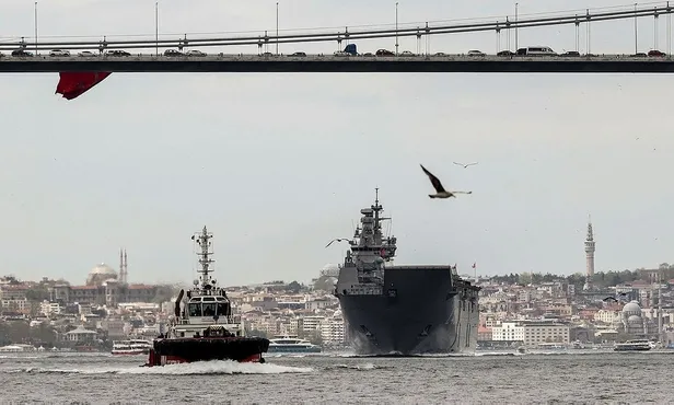 Boğaz geçişi sırasında TCG Anadolu'da Milli Savunma Bakanı Hulusi Akar ile kuvvet komutanları da yer aldı.