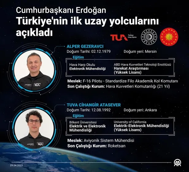 Uzay yolcumuzun uzay ile buluşma zamanı 2023 yılının son çeyreği olarak planlanıyor. Vakit geldi, Türkiye'nin gücünün ve kararlılığının sembolü olacak bayrağımızı uzayda gururla taşıyacak uzay yolcularımızı tanıma vakti de geldi.