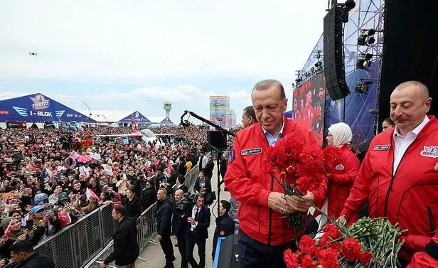 Azerbaycan Cumhurbaşkanı Aliyev'in konuşmasının ardından Cumhurbaşkanı Recep Tayyip Erdoğan, festival alanındaki katılımcılara ve Kahramanmaraş'ta Azerbaycan Devleti ve TOKİ Ortak Projesinin Temel Atma Töreni'ne canlı bağlantı ile hitap etti.