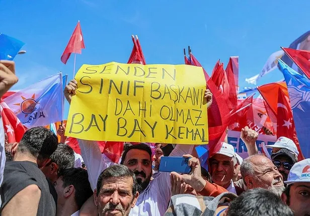 Sizlerle bir şeyi paylaşmak istiyorum, Kandil'den, ne diyordu birisi. Bunların bayrağı var mı, bunların ezanı var mı, bunların dini var mı? Ne diyor, 'Bizim desteğimiz Kılıçdaroğlu'yladır.' Şimdi dini olmayan, diyaneti olmayan, bayrağı olmayan, ezanı olmayan kimler destekliyor bay bay Kemal'i, bu teröristler. İşte, 'Söyle bana arkadaşını söyleyeyim sana kim olduğunu.' Bay bay Kemal, senin arkadaşın Kandil ve onlarla beraber bu yoldasın. Ama bay bay Kemal, 14 Mayıs'ta bu aziz millet, benim bu sevgili vatandaşlarım sana sandıkları mezar edecek. Buna hazır mıyız?"