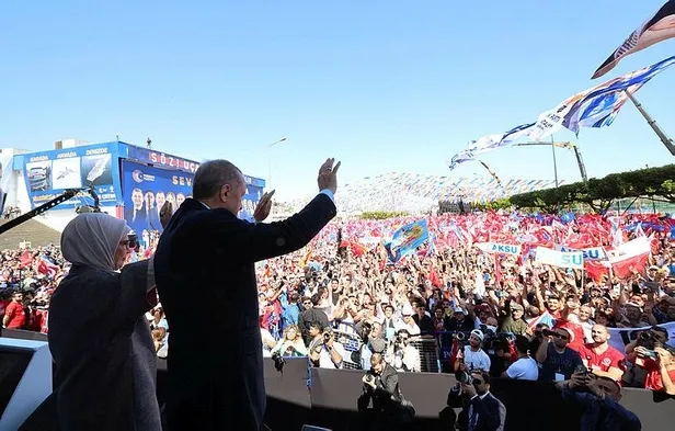 Alandakilerin "evet" yanıtını vermesi üzerine Erdoğan, "Öyleyse 14 Mayıs'ta Antalya'dan rekor bir destek bekliyoruz. Söz mü? Ben size inanıyorum. Sizleri Allah için seviyorum. Hiç yalnız bırakmadınız. İnanıyorum ki 14 Mayıs'ta da yalnız bırakmayacaksınız." dedi.