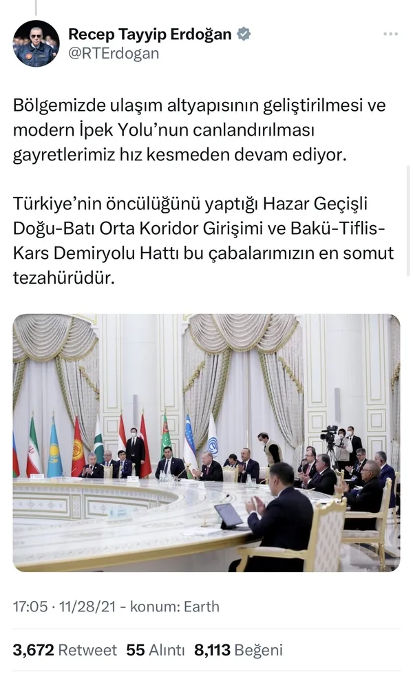 Kılıçdaroğlu'nun açıklamalarının ardından Başkan Erdoğan'ın 2021 Kasım ayında yaptığı 'Modern İpek Yolu' paylaşımı sosyal medyada yeniden gündeme girdi.