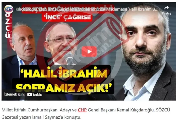Ancak bir kaset kumpasıyla CHP'nin başına geçen Kemal Kılıçdaroğlu'nun, kumpasa maruz kalan İnce'ye yaptığı bu çağrı samimiyetten uzak bir tutum olarak kayıtlara geçti.