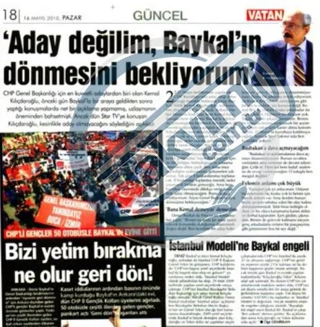 (Tarih: 16 Mayıs 2010) Kemal Kılıçdaroğlu, "Aday değilim, Baykal'ın dönmesini bekliyorum" dedi