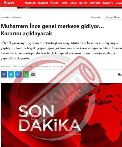 FETÖ, Muharrem İnce aday olmasın diye sahte görüntüler ve aşağılık yöntemlerle kumpas kurup Kılıçdaroğlu ve 7'li koalisyona alan açtı. CHP medyası "İnce çekiliyor mu?" algısını işledi. Durumu izleyip umduğunu bulamayan Kemal Kılıçdaroğlu ise saatler sonra topa girdi.