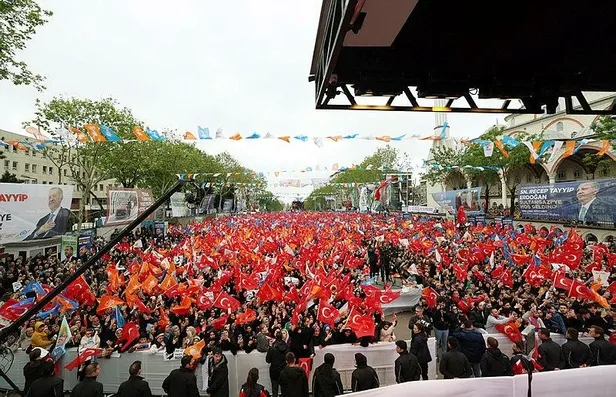 Başkan Erdoğan, konuşmasının ardından sahneye davet edilen partisinin AK Parti İstanbul 2. Bölge milletvekili adaylarıyla vatandaşları selamladı.