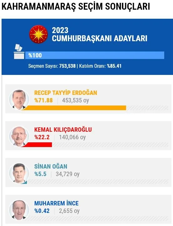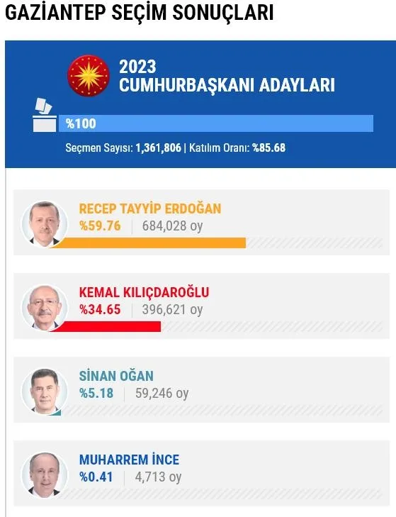 Son dakika haberleri... Kahramanmaraş merkezli asrın felaketinden etkilenen 11 ilden çıkacak seçim sonuçları da merak edilenler arasında. İşte Şanlıurfa, Adıyaman, Hatay, Osmaniye, Kilis, Gaziantep, Kahramanmaraş, Adana, Diyarbakır, Elazığ ve Hatay’da seçim sonuçları...