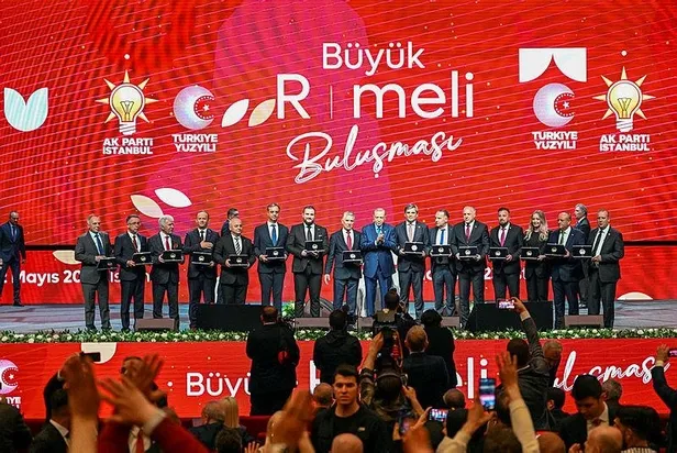Erdoğan, "Şimdi sizlerle şöyle kavlimizi bir yenileyelim diyorum. Hazır mıyız? Şöyle ayağa kalkalım. Çok gür seda ile tüm Türkiye duysun." diye seslendiği salondaki katılımcılarla birlikte, "Tek millet, tek bayrak, tek vatan, tek devlet. Bir olacağız. İri olacağız. Diri olacağız. Kardeş olacağız. Hep birlikte Türkiye olacağız." şeklinde konuştu.