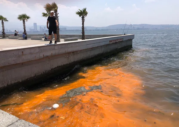 İzmir Körfezi'nde yine aynı görüntü! Uzmanlardan 'kırmızı- turuncu renk' uyarısı