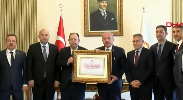 YSK Başkanı Ahmet Yener, Başkan Erdoğan'ın mazbatasını TBMM Başkanı Mustafa Şentop'a teslim etti.Mazbatayı teslim alan Şentop, "İnşallah yemin töreni öncesinde mazbata, geçici Meclis Başkanı tarafından Cumhurbaşkanı'na takdim edilecek" dedi.