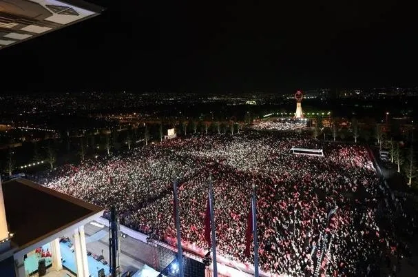 Partililerin sevgi gösterilerinde bulunduğu Başkan Erdoğan, "Bu millet sevilmez mi? Biz severiz. Kandil'dekiler sevmez. Onların uzantıları sevmez. Ama biz severiz. İşte şu anki tablo sevgililerin tablosu. Resmi rakam 320 bin kişi şu anda burada. Cumhur İttifakı'nı mahcup etmediniz. Cumhur İttifakı'nı bu yolda yalnız koymadınız. Bu yolda beraber yürüdük. Gece gündüz demeden yürüdük. Ve sizler bu görevi yine bizlere verdiniz. İnşallah Türkiye Yüzyılı'nı beraber inşa ve ihyaya devam ediyoruz" dedi.