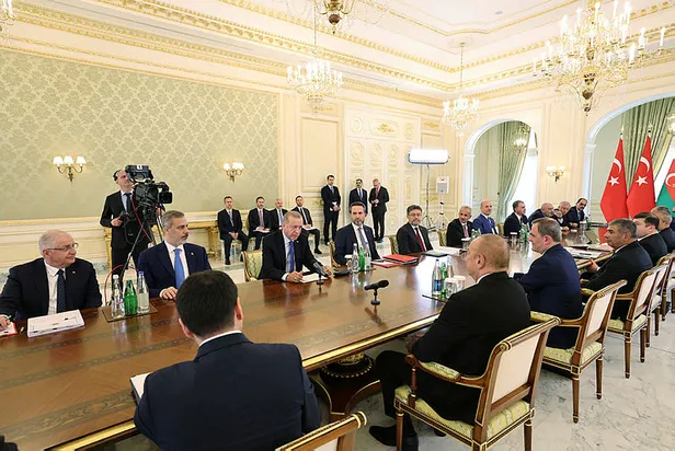 Başkan Recep Tayyip Erdoğan ile Azerbaycan Cumhurbaşkanı İlham Aliyev'in baş başa görüşmesi sona erdi.