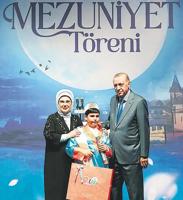 Başkan Erdoğan, torunu Ali Tahir Erdoğan'ın da mezun olduğu Palet Okulları'nın mezuniyet törenine katıldı. Oğullarının mezuniyeti töreninde Yeni Türkiye Eğitim Vakfı (YETEV) Mütevelli Heyeti Başkanı Necmeddin Bilal Erdoğan ve eşi Reyyan Uzuner de yer aldı.