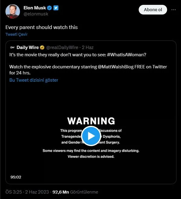 Twitter'ın sahibi Elon Musk, 2 Haziran'da yayınlanan belgesele Twitter tarafından sansür uygulanmasının ardından başlangıçta gelen şikayetlere karşı tepkisiz kalmayı tercih ederken, cuma günü belgeseli alıntılayarak, 'Bunu her ebeveyn izlemeli' dedi ve içeriğe uygulanan erişim engeline dair tüm sansürleri kaldırdı.