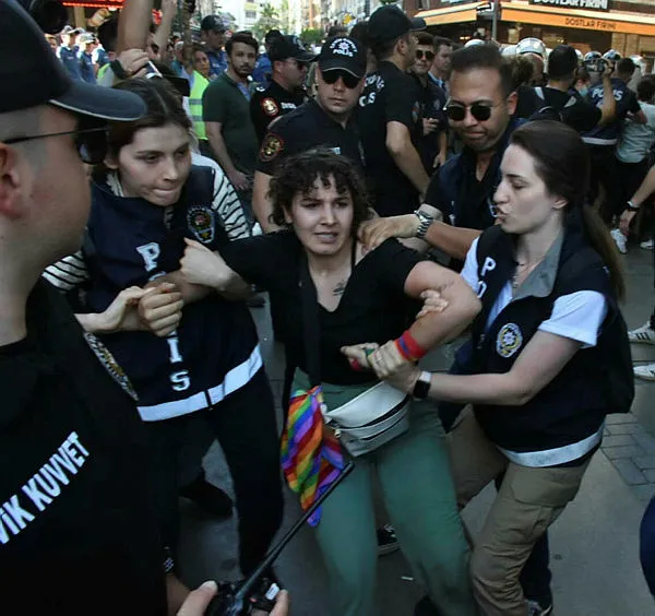 Polis ekiplerince uyarılara aldırış etmeyen 50'nin üzerinde LGBT üyesi gözaltına alınarak emniyete götürüldü.