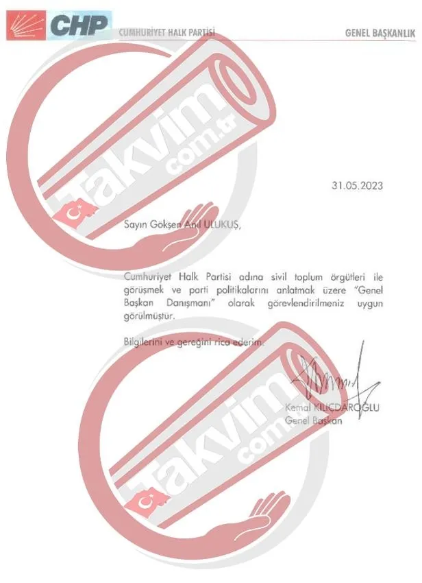 Öte yandan CHP'nin açıklaması sonrası Nevşin Mengü, Kılıçdaroğlu'nun Ulukuş'u danışman olarak atadığı belgeyi sosyal medya hesabından paylaşarak Kılıçdaroğlu'nun baskılara dayanamadığını ve geri adım attığını yazdı.