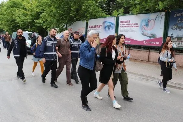 Polis minibüsüne bindirilen 18 kişi geçirildiği sağlık kontrollerinin ardından ifadeleri için Eskişehir Emniyet Müdürlüğü Güvenlik Şubesi'ne götürüldü.