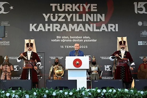 Başkan Recep Tayyip Erdoğan, 15 Temmuz Demokrasi ve Milli Birlik Günü kapsamında, Cumhurbaşkanlığı İletişim Başkanlığı, İstanbul Valiliği ve Üsküdar Belediyesi işbirliğinde, Beylerbeyi Stadyumu'nda düzenlenen "Türkiye Yüzyılı'nın Kahramanları" programına katıldı.