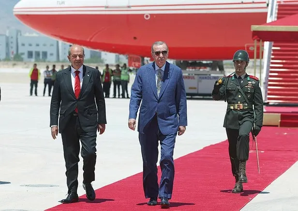 Başkan Recep Tayyip Erdoğan, temaslarda bulunmak üzere Kuzey Kıbrıs Türk Cumhuriyeti'ne (KKTC) geldi. Özel uçakla saat 13.15'te Ercan Havalimanı'na gelen Erdoğan, KKTC Cumhurbaşkanı Ersin Tatar tarafından resmi törenle karşılandı.
