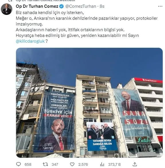 Hoyratça heba edilmiş bir güven, yeniden kazanılabilir mi?" diyerek Kemal Kılıçdaroğlu'nu hedef almıştı.