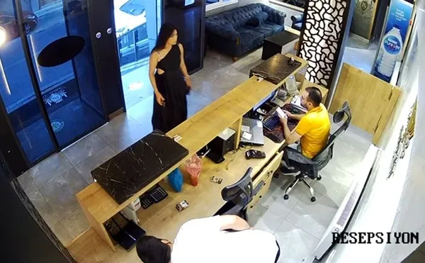 Görüntülerde, şüphelinin otel görevlisiyle odaya çıktığı, elinde silahla odaya girdiği, cinayeti işledikten sonra Bayramova ile birlikte kaçtığı görülüyor.