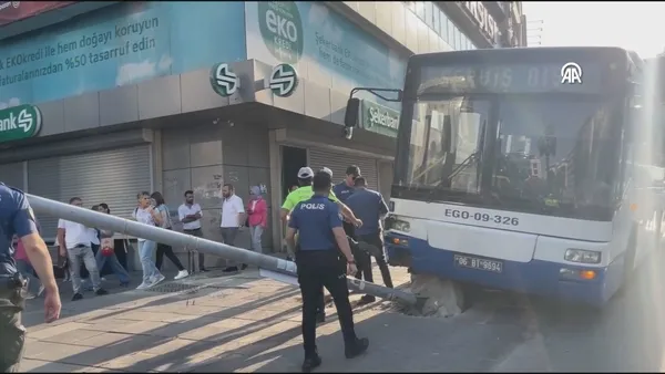 Son dakika haberleri... Ankara Büyükşehir Belediyesi'nin yönetimindeki EGO otobüsü kaldırıma çıkarak sinyalizasyon direğine çarptı. Kaldırımdaki bir yayaya da çarpan otobüs güçlükle durduruldu. Yaralanan yaya, çevredekilerin haber vermesi üzerine olay yerine gelen sağlık ekiplerince hastaneye kaldırıldı.