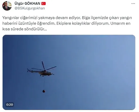6 Şubat'ta Kahramanmaraş'ta meydana gelen depremlerin ardından başlayan seferberlik ruhu, Çanakkale'de yaşanan orman yangınlarında yeniden can buldu. 'Yeşil vatan' savunmasına için gönüllüler bölgeye akın etti. Can başla verilen mücadelenin ardından yangın 48 saat içinde söndürülürken CHP adına bir skandal yaşandı. Belediye Başkanı Ülgür Gökhan'ın ABD'de tatilde olduğu öğrenildi. Tatilini yarıda kesmekten imtina eden Gökhan'ın attığı pişkince tweet tepki çekti.