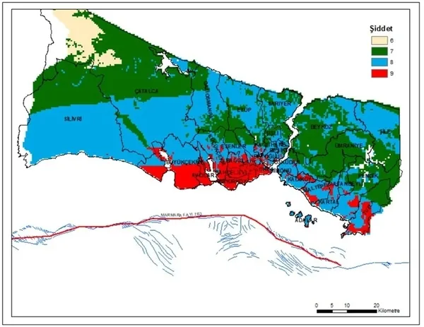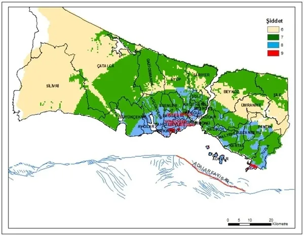 "Senaryo-1: Sadece Adalar fayı kırılırsa 6.9 büyüklüğünde deprem beklenir (Şiddet değil). Tuzla ve Adalar'da zayıf zeminlerde yerel olarak IX şiddet değerlerine ulaşılır."