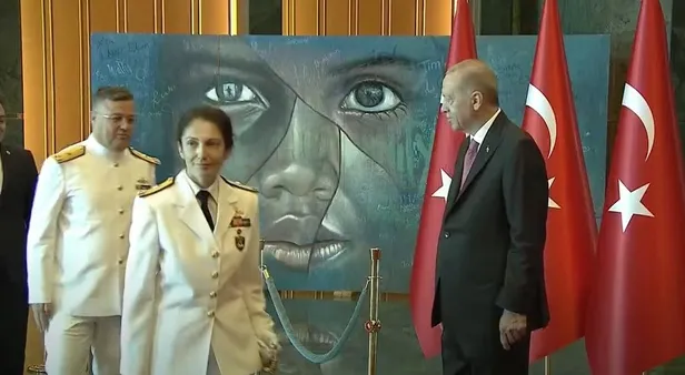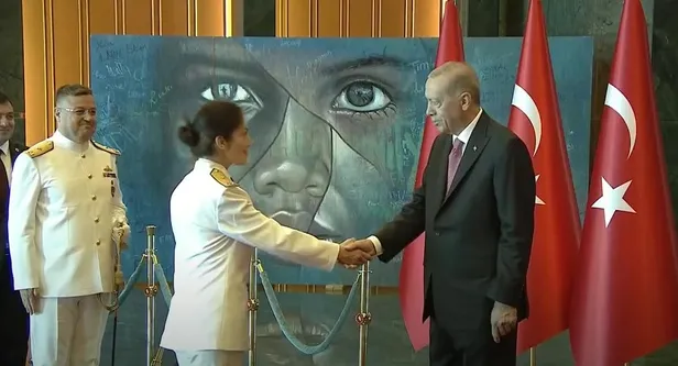 Başkan Erdoğan, TSK'da ilk kez kadın amiral olarak görev yapmaya başlayan Gökçen Fırat'ı da kabul etti.
