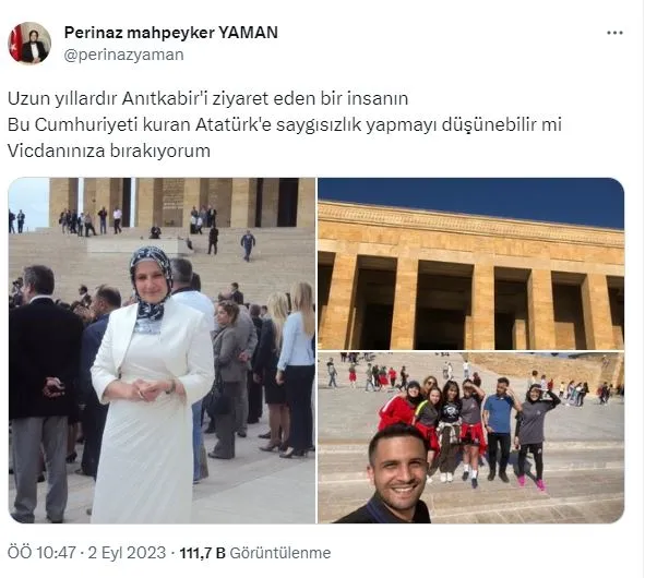 Daha sonra sosyal medya üzerinden paylaşım yapan Yaman "Uzun yıllardır Anıtkabir'i ziyaret eden bir insanın Bu Cumhuriyeti kuran Atatürk'e saygısızlık yapmayı düşünebilir mi Vicdanınıza bırakıyorum." diyerek Anıtabirden fotoğraflar paylaştı.