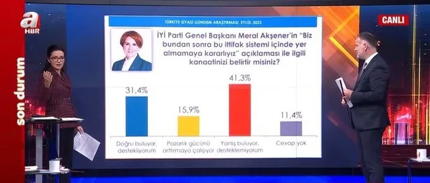 Vatandaşlara "İYİ Parti Genel Başkanı Meral Akşener'in "Biz bundan sonrası bu ittifak sistemi içinde yer almamaya kararlıyız" açıklaması ile ilgili kaanatinizi belirtir misiniz?" sorusu soruldu.