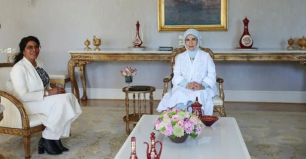 Başkan Recep Tayyip Erdoğan'ın eşi Emine Erdoğan, Malcolm X'in kızı İlyasa Şahbaz'ı kabul etti.