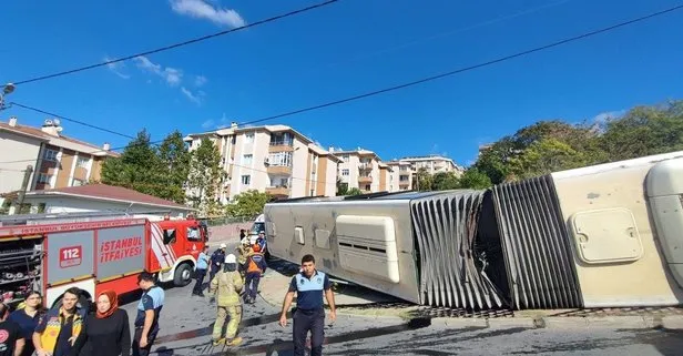 Başakşehir'de İETT otobüsü devrildi! Kazanın görüntüleri ortaya çıktı
