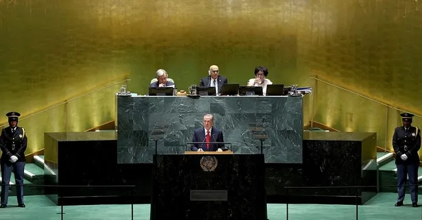 Başkan Erdoğan, BM Genel Kurul Salonu'nda BM'nin 78. Genel Kurulu görüşmelerinde katılımcılara hitap etti. Tüm dünyaya çok kritik mesajlar veren Başkan Erdoğan şüphesiz açıklamalarıyla en dikkat çeken lider oldu.