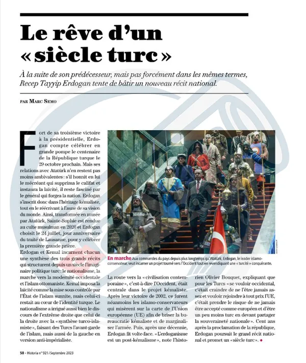 Fransa merkezli tarih dergisi Historia, Türkiye Cumhuriyeti'nin dünü ve bugününe ilişkin bir analiz yayınladı.