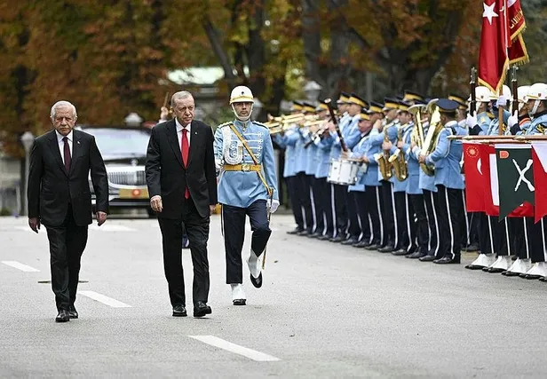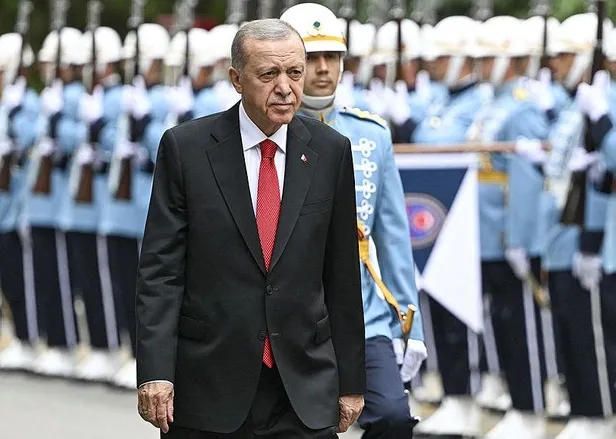 Cumhurbaşkanlığı Tören Birliği kıtasını selamlayan Başkan Erdoğan, Şeref Kapısı önünde kendisini karşılayan TBMM Başkanı Numan Kurtulmuş ile Genel Kurul salonuna geçti.