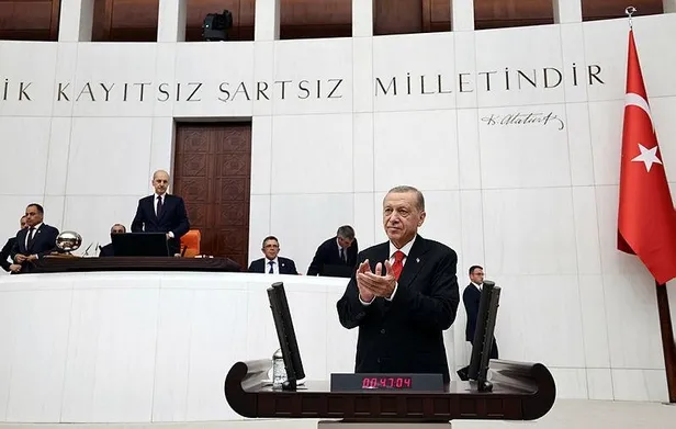 Her ülkenin meclisinin kendi tarihi, kültürü, istiklali ve bekası için önemli olduğuna işaret eden Erdoğan, "Ancak TBMM'nin ilki Milli Mücadele, ikincisi 15 Temmuz'da olmak üzere iki defa gazilik payesiyle şereflenmiş; darbelerden cuntalara nice badireleri atlatarak dimdik ayakta kalmış, vesayetin tüm baskılarına rağmen daima milletin safında yer almayı başarmış bir kurum olarak tüm parlamentolar içinde özel bir yere sahip bulunduğuna inanıyorum. Milli Mücadele gibi bir destanı; yokluklar, ihanetler, karanlık hesaplar içinde zafere ulaştıran Meclisimizin, bugün de Türkiye Yüzyılı'nın ufkunu aydınlatacağından şüphe duymuyorum." değerlendirmesinde bulundu.