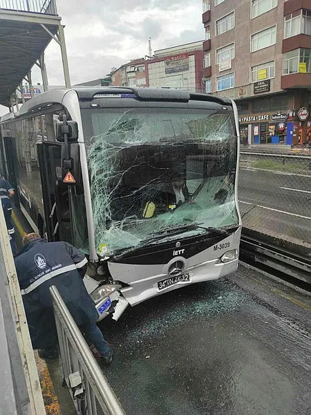 Son dakika: Küçükçekmece Beşyol metrobüs durağında iki metrobüs çarpıştı!