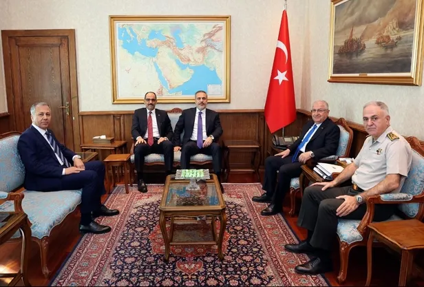 Milli Savunma Bakanı Yaşar Güler, Dışişleri Bakanı Hakan Fidan, İçişleri Bakanı Ali Yerlikaya, Genelkurmay Başkanı Orgeneral Metin Gürak ve MİT Başkanı İbrahim Kalın Milli Savunma Bakanlığında bir araya geldi.