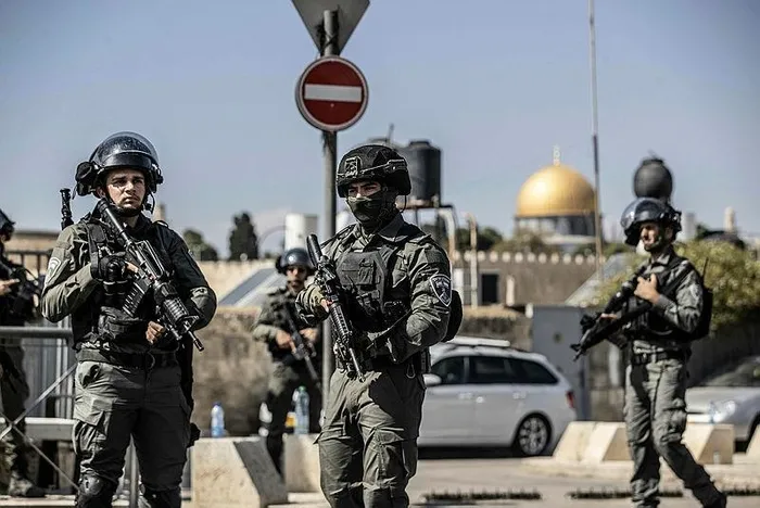 İsrail polisi yaklaşık on kişilik bir grupla Mescid-i Aksa avlusundaki Kubbetu's Sahra'nın Camisi'nin yanında namaz boyunca bekledi.